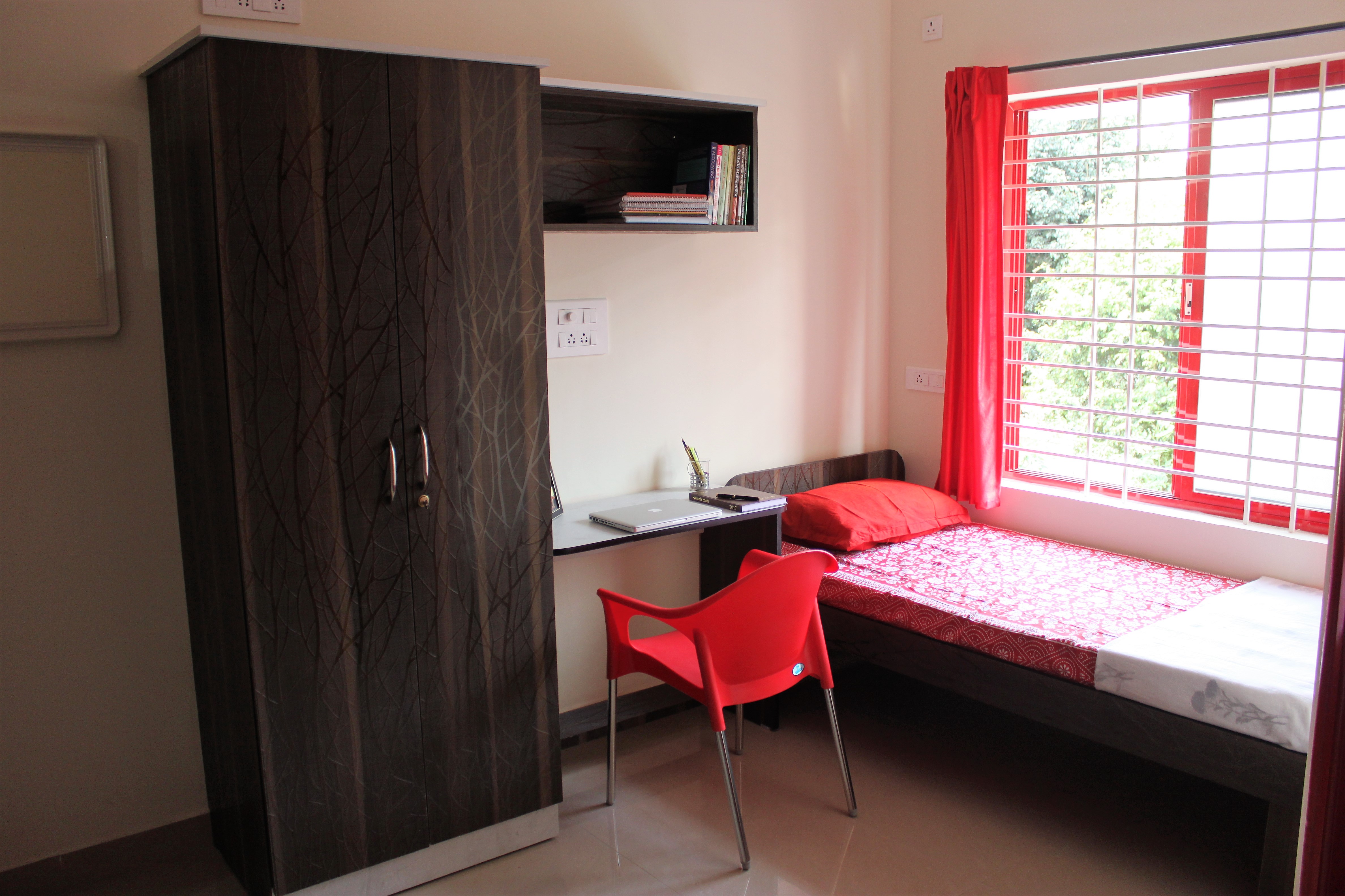 - Each room has a generous 3 feet bed, a tall wardrobe, room desk, and comfy swivel chair with plenty of work space.